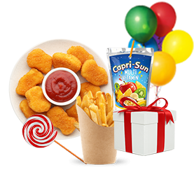 4 Nuggets + Frites + Capri-Sun + Jouet + Sucette + Ballon.